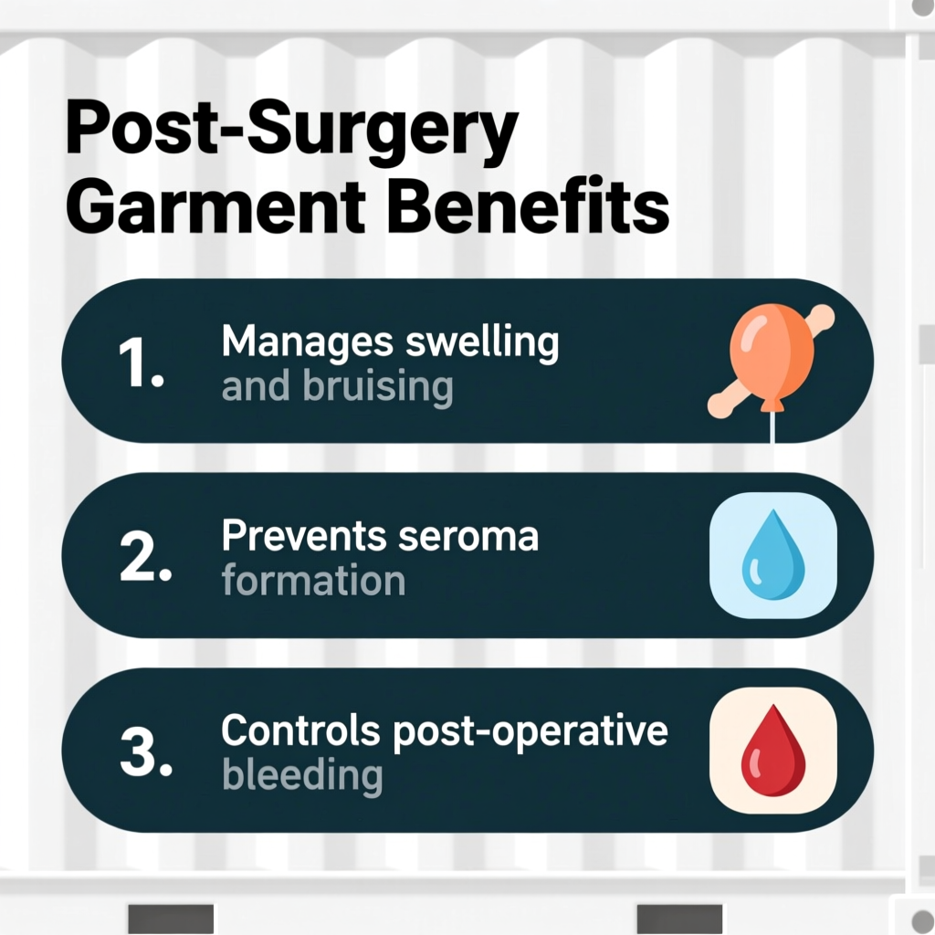 - Controls Bleeding: The garment keeps firm pressure on the small blood vessels to stop any potential bleeding right after the procedure.