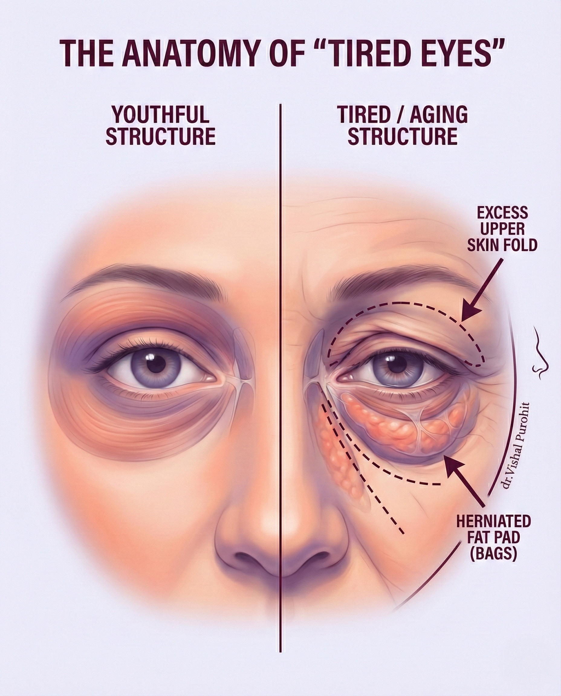 कृपया ध्यान दें: यह जानकारी केवल शैक्षिक उद्देश्यों के लिए है और पेशेवर चिकित्सा सलाह का विकल्प नहीं है। यह निर्धारित करने के लिए कि क्या आप ब्लेफेरोप्लास्टी के लिए उपयुक्त उम्मीदवार हैं, डॉ. विशाल पुरोहित से व्यक्तिगत परामर्श आवश्यक है।.