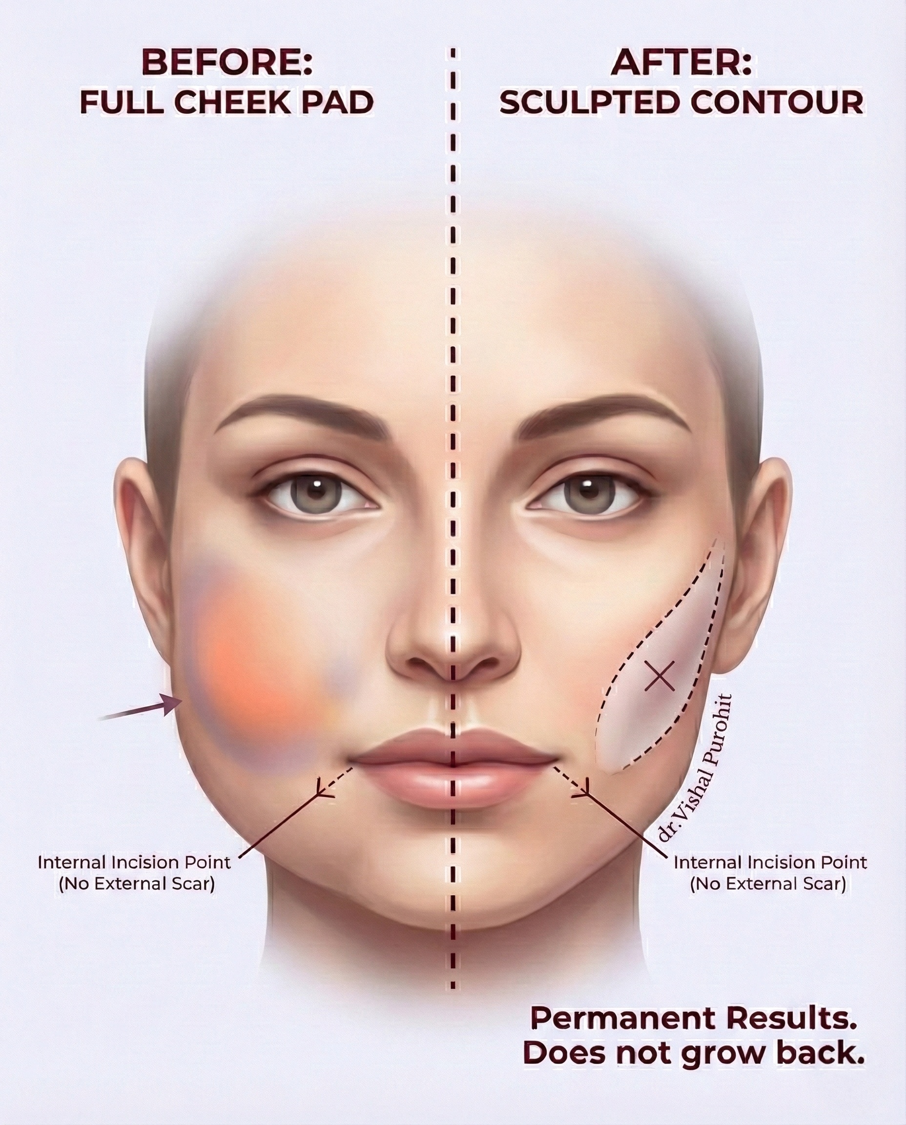 अस्वीकरण: कृपया ध्यान दें कि इस लेख में दी गई जानकारी केवल सूचनात्मक उद्देश्यों के लिए है और इसे चिकित्सा सलाह के रूप में नहीं माना जाना चाहिए। आपके विशिष्ट मामले के लिए बुक्कल फैट रिमूवल की उपयुक्तता, जोखिम और लाभों को समझने के लिए डॉ. विशाल पुरोहित या किसी योग्य स्वास्थ्य सेवा पेशेवर से परामर्श करना महत्वपूर्ण है। प्रक्रिया की प्रभावशीलता हर व्यक्ति में अलग-अलग होती है, और परामर्श यह आकलन करने का सबसे अच्छा तरीका है कि यह सर्जरी आपके व्यक्तिगत सौंदर्य लक्ष्यों को कैसे पूरा कर सकती है।