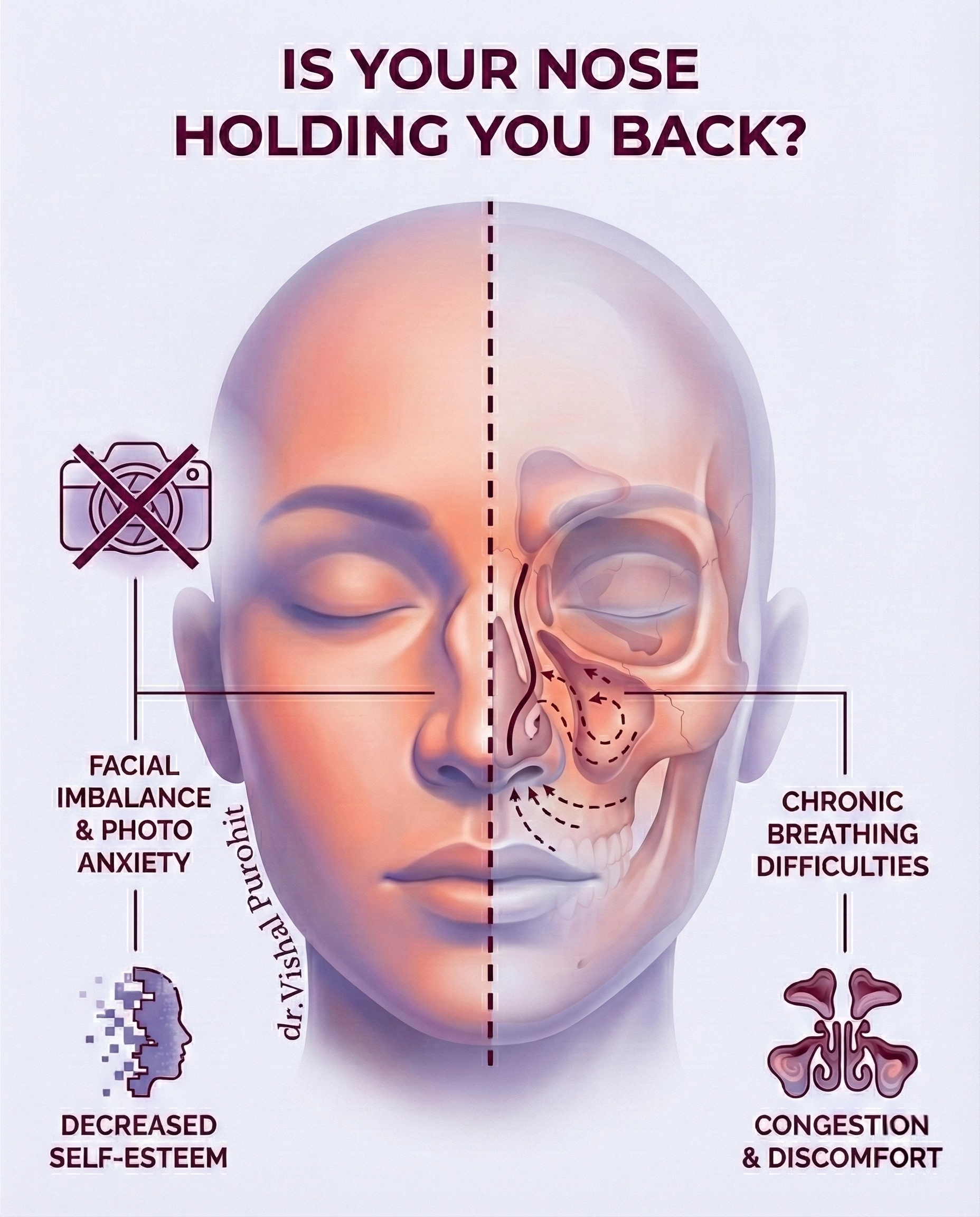 Your nose is the center of your face. When you aren't happy with its shape or struggle to breathe properly, it affects every interaction you have. You shouldn't have to live with self-consciousness or physical discomfort.