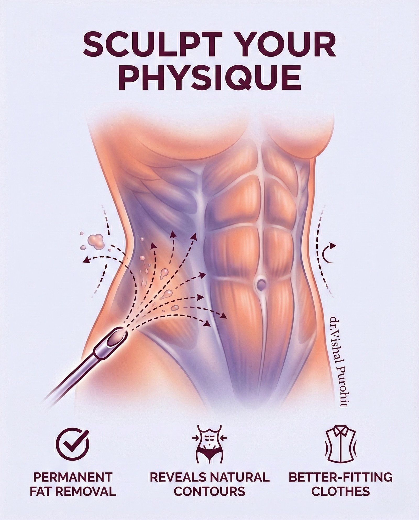 If you are contemplating liposuction or have any queries about cosmetic surgery, don’t hesitate to reach out. Contact Dr. Vishal Purohit at +91-7718183535, either through a call, WhatsApp, or Telegram. For a more personal consultation and to understand how liposuction can be tailored to your needs, visit Dr. Vishal Purohit on Google Maps.